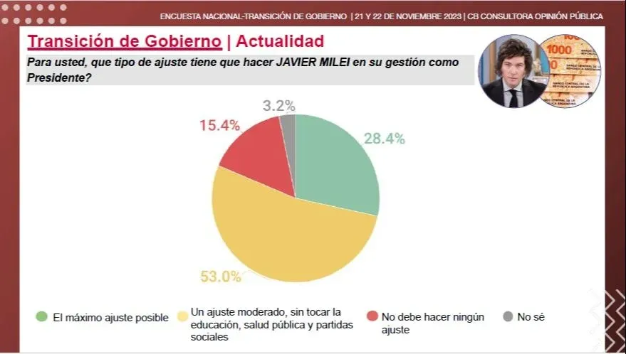 Una pregunta particularmente sensible del estudio se refiere a qué tipo de ajuste debería hacer el nuevo gobierno. En este caso, la mayoría de los encuestados optaron por un ajuste "moderado":