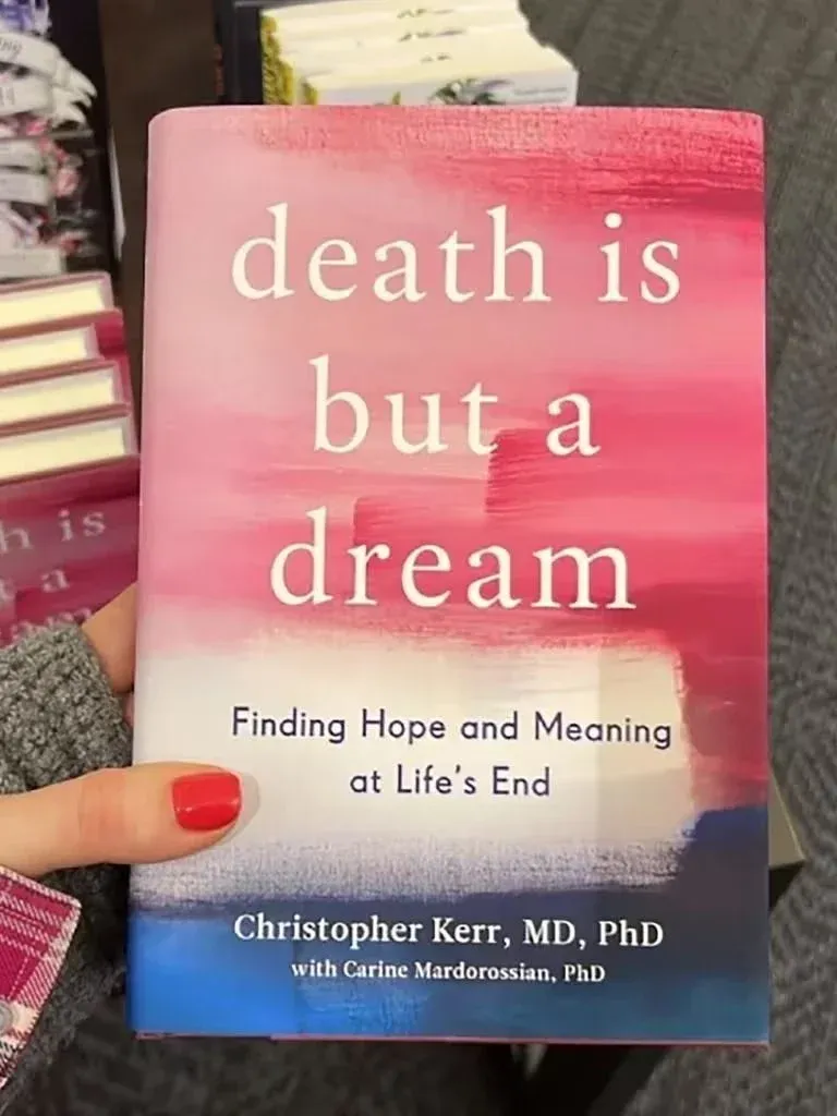 Ataviada con ropa de invierno, Guillermina se fotografió en un lugar junto a otras personas y mostró la portada del libro "Death is but a dream" del escritor Christopher Kerr en una librería de considerables dimensiones, posiblemente ubicada en la Gran Manzana.