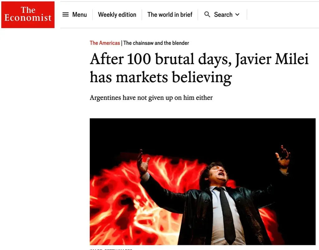 La revista británico The Economist analizó los primeros 100 días de Javier Milei en la Presidencia de la Nación y aseguró que, en dicho periodo, el mandatario “puede presumir de un verdadero éxito económico”, aunque advirtió por los problemas que enfrenta en materia de inflación, pobreza y recesión.