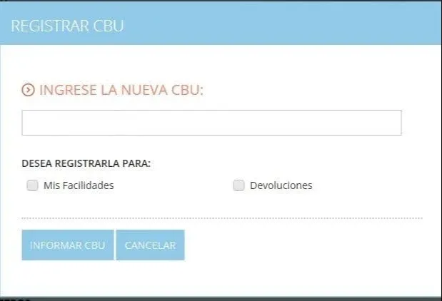 - Ir al al servicio “Declaración de CBU”.