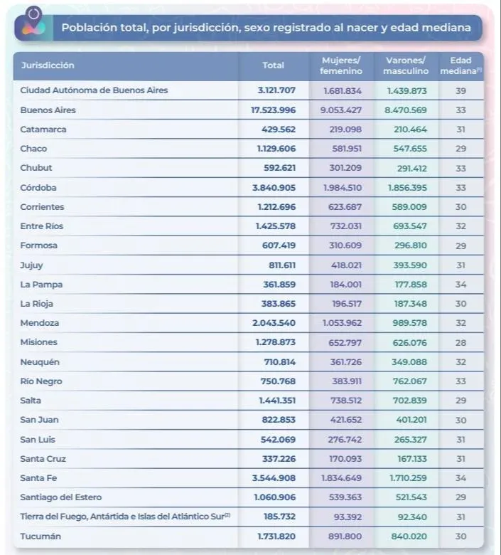 Población total, por jurisdicción, sexo registrado al nacer y edad mediana