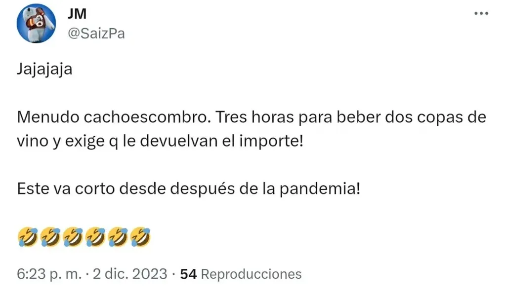 Luego, al detallar sobre lo sucedido, continuó afirmando que "se presenta el camarero y les pide que se vayan porque llevaban tres horas y no habían consumido nada”. Además, otra razón por la que les pedían que se retiraran fue porque la mesa estaba reservada para otras personas, pero, según el posteo citado, Coti habría señalado que "es famoso, que tiene millones de seguidores y que no se mueve".
