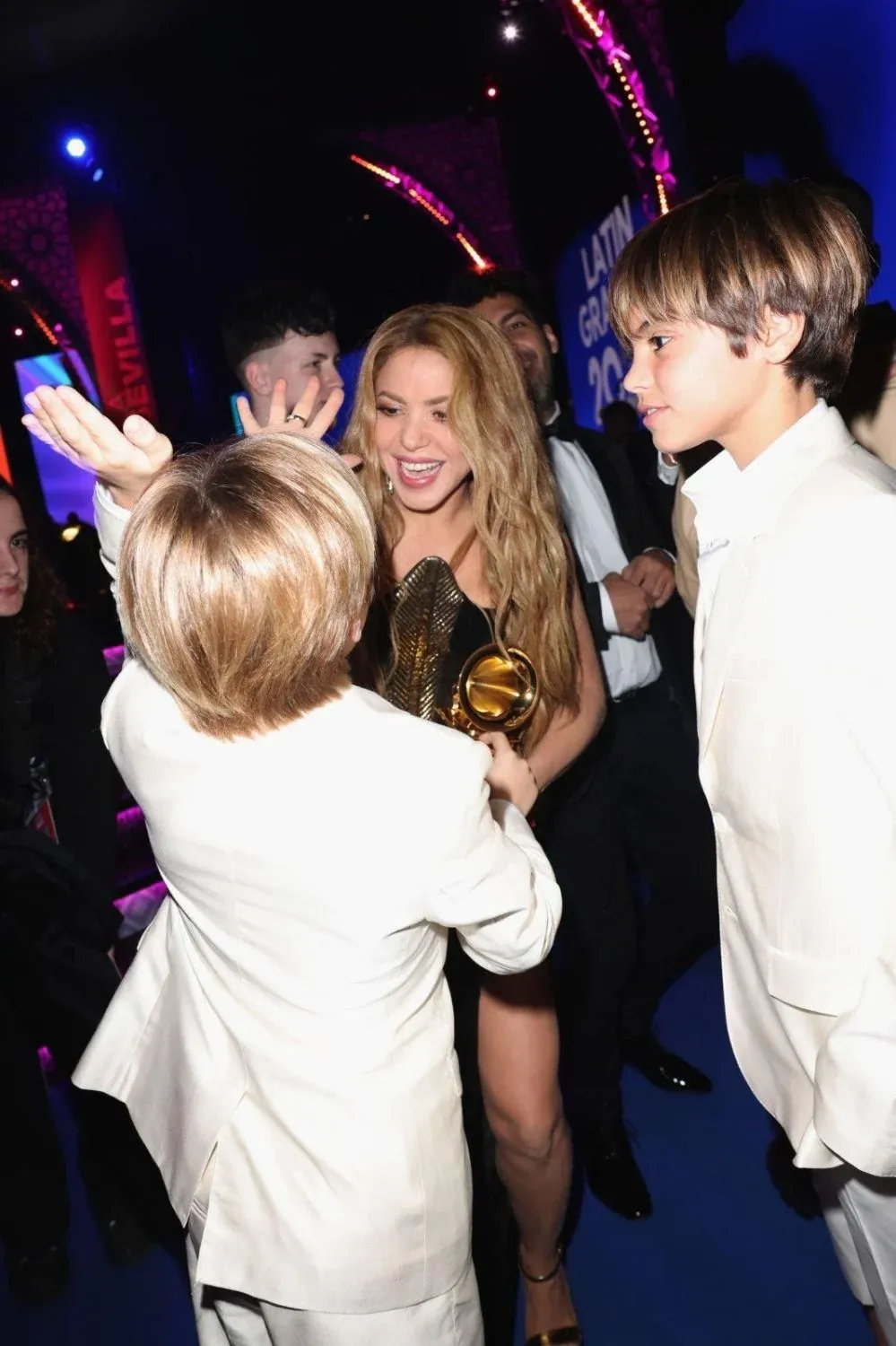 Shakira y sus hijos "Gracias. Quiero compartir este premio con mis colegas, grandes talentos con los que he tenido el placer de trabajar y de aprender tantas cosas. Y me gustaría compartir esto con mi público latino, que me ha llevado a cumbres altísimas", agregó, emocionada.