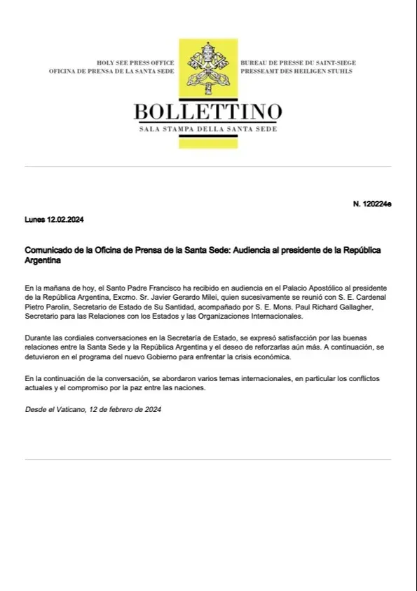 El comunicado oficial del Vaticano sobre la reunión.