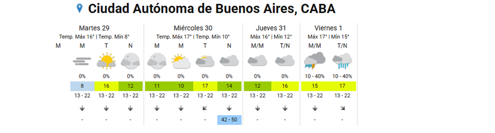 La Ciudad Autónoma de Buenos Aires (CABA) y las localidades linderas que conforman el Área Metropolitana de Buenos Aires (AMBA) registrarán este martes 29 de julio cielo parcialmene nublado. La humedad será la reinante en la zona central del pais, escenario que culiminará con el regreso de las lluvias.