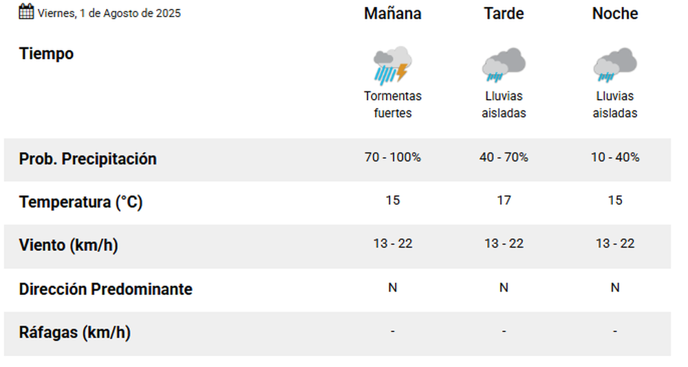 El Servicio Meteorológico Nacional (SMN) emitió este viernes 1 de agosto la alerta amarilla por tormentas fuertes que se registrarán en toda el Área Metropolitana de Buenos Aires (AMBA).