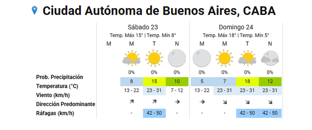 La Ciudad Autónoma de Buenos Aires (CABA) y las localidades linderas que conforman el Área Metropolitana de Buenos Aires (AMBA) registrarán este sábado 23 de agosto cielo despejado.