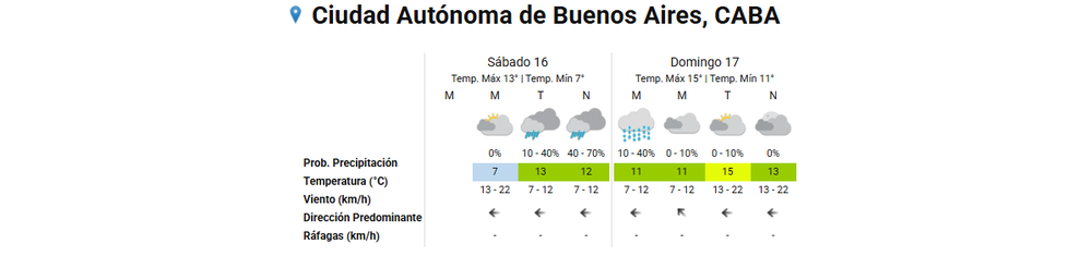 La Ciudad Autonóma de Buenos Aires (CABA) y las localidades linderas que conforman el Área Metropolitana de Buenos Aires (AMBA) registrarán este sábado 16 de agosto lluvias aisladas que irrumpirán las jornadas soleadas.