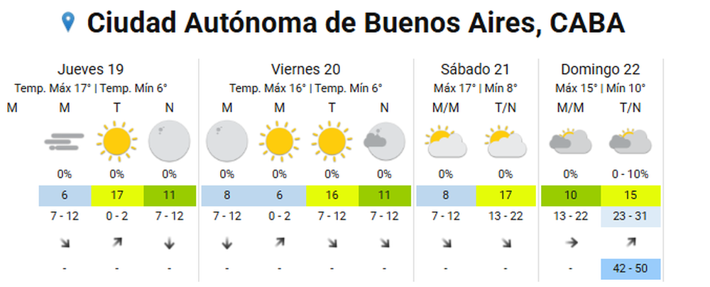 El Servicio Meteorológico Nacional (SMN) ratificó el arribo de una nueva ola polar en Argentina para la próxima semana. Con temperaturas mínimas que no superarán los 10° C en la Ciudad Autónoma de Buenos Aires (CABA), el feriado del viernes 20 de junio marcará el inicio del descenso térmico en el distrito porteño.