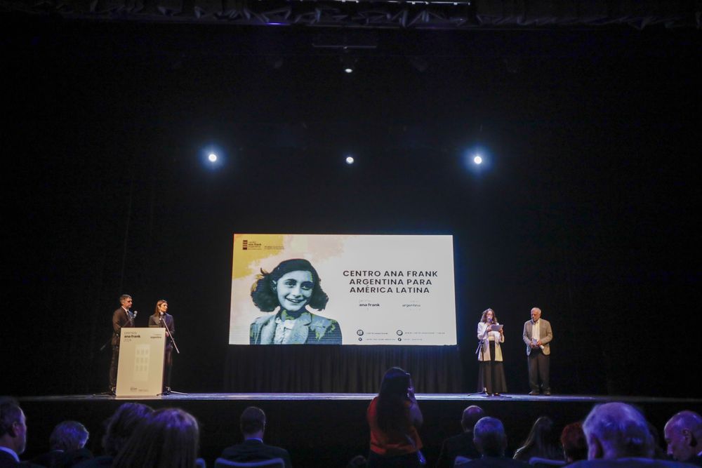 La directora de la Oficina Internacional de la Intendencia de la Ciudad de Amsterdam, Sabine Gimbrère, recibió un reconocimiento por su permanente cooperación en la divulgación del legado de Ana Frank en Argentina y en los Países Bajos
