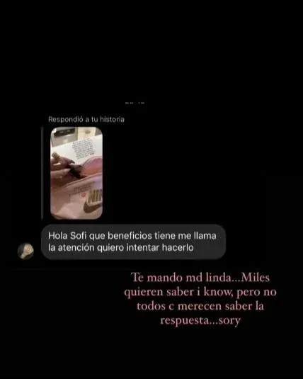 Con amabilidad, la diseñadora de lencería erótica respondió: "Te mando mensaje privado, linda... Miles quieren saber, lo sé, pero no todos se merecen saber la respuesta…. sorry".