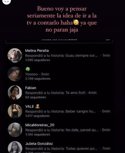 Una seguidora comentó en la publicación: "Perdón, ¿qué tomás?" a lo que Sofía respondió directamente y sin rodeos: "Sangre".