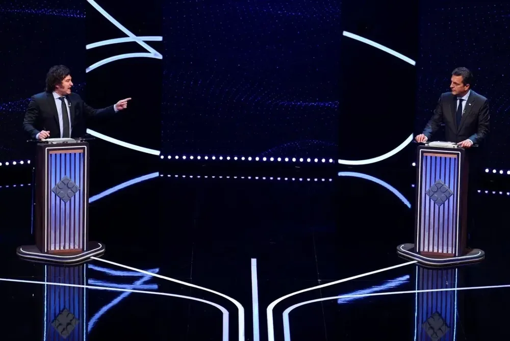 "¿Y qué querés preguntar?", le preguntó Milei. "Nada, te di la palabra", respondió Massa. "Bueno, te la cedo", expresó entre risas el candidato liberal.