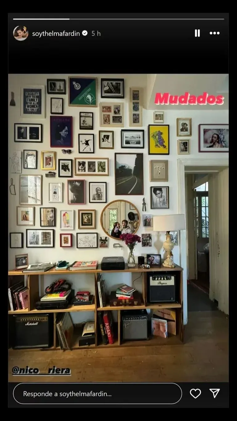 En sus historias de Instagram, la actriz compartió una foto de una pared con varios cuadros y un pequeño espejo redondo en el centro, donde se refleja ella junto a Riera, ambos luciendo muy felices por este gran paso. "Mudados", escribió en rojo en una esquina de la imagen para capturar el momento. Además, etiquetó al actor, quien más tarde compartió la publicación en su perfil de la misma red social.