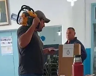 Es por esto que los seguidores del diputado liberal se identifican con este artefacto y el balotaje no fue la excepción. Esta vez fue en la localidad bonaerense de Pehuajó que el usuario de TikTok "chicodino" fue con la motosierra. Este usuario había expresado que no adelantaría su voto, pero que si daría "señales".