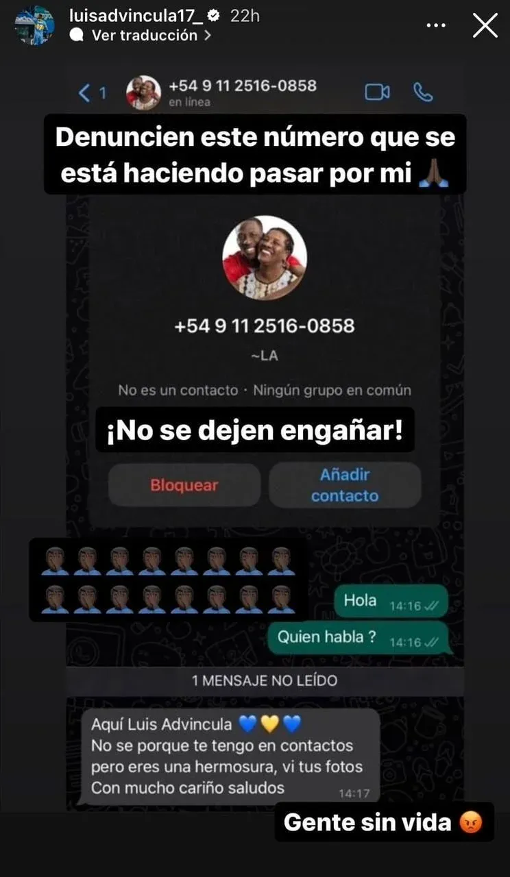 En las últimas horas, el futbolista peruano Luis Advíncula denunció que le roban la identidad con un número de teléfono para escribirle a mujeres por WhatsApp.