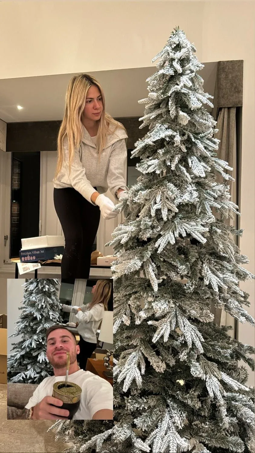 En la imagen difundida a través de las historias en su cuenta de Instagram, Ailén se encuentra en primer plano, mostrándose concentrada mientras arma un imponente árbol de Navidad cubierto de nieve. Además, el exjugador del Brighton añadió una fotografía adicional donde aparece él, sonriendo junto a un mate, con su pareja en segundo plano.