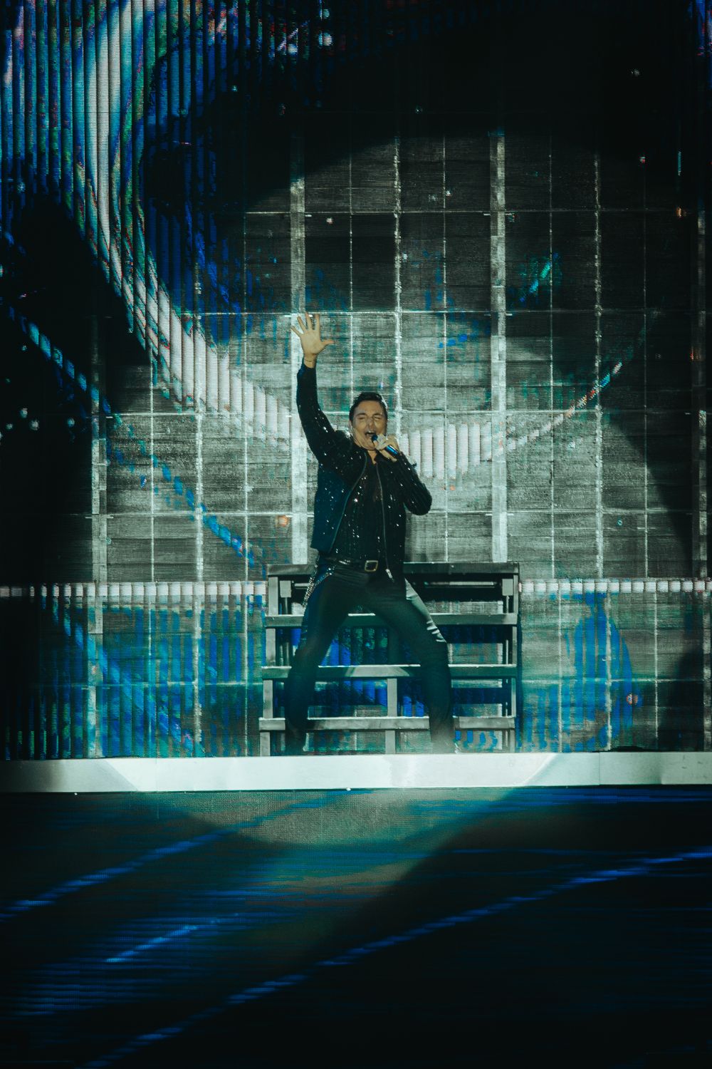Acompañado por un cuerpo de baile y una banda impecable, en este show incluso se ven algunas versiones algo distintas de canciones como Torero, más cercanas incluso al rock, con guitarras chillantes y potencia al máximo (quizás el hecho de que antes de salir al escenario suene la canción de The Who Baba O’Riley sea una pista de esta cara inesperadamente “rockera” que ofrece el cantante).