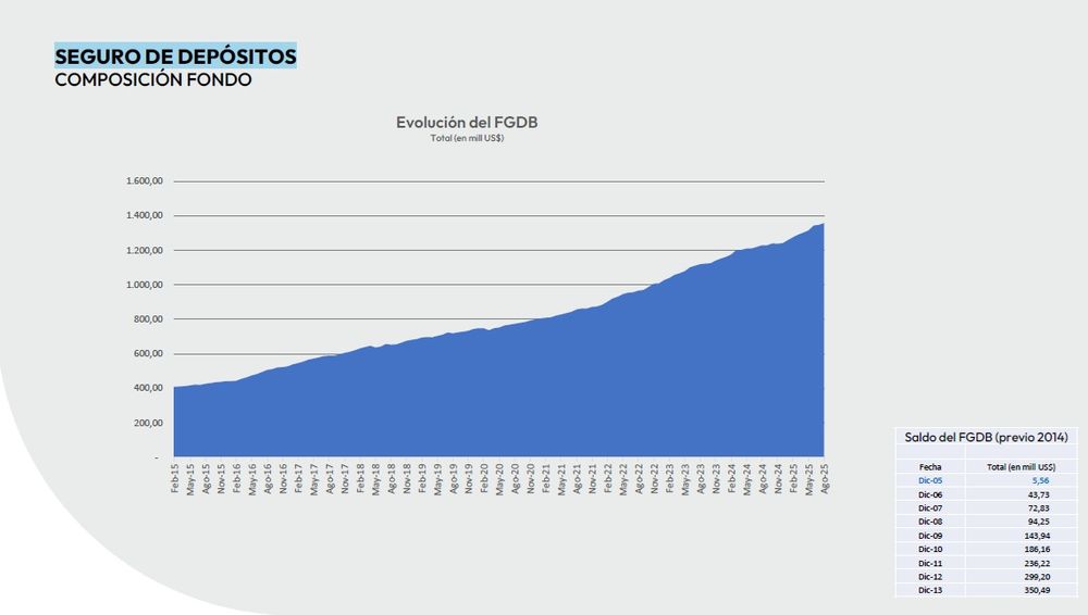 El saldo del seguro de depósito que administraba la Copab, a agosto de 2025, era de US$ 1.357 millones, según informaron autoridades del organismo durante una reunión con periodistas en la que participó El Observador.