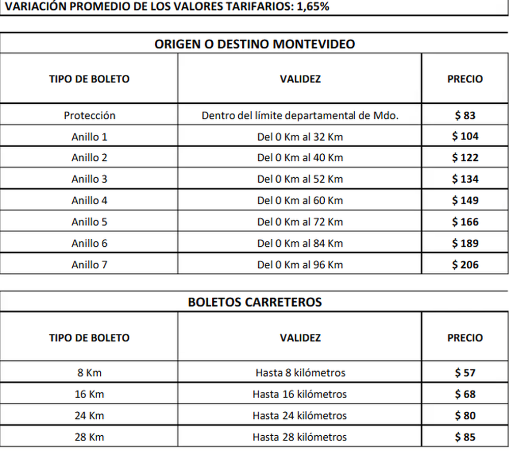 El Ministerio de Transporte y Obras Públicas (MTOP) informó que a partir del próximo lunes habrá un aumento del precio del boleto suburbano. De acuerdo con el comunicado de la cartera, el aumento será de 1,65%.