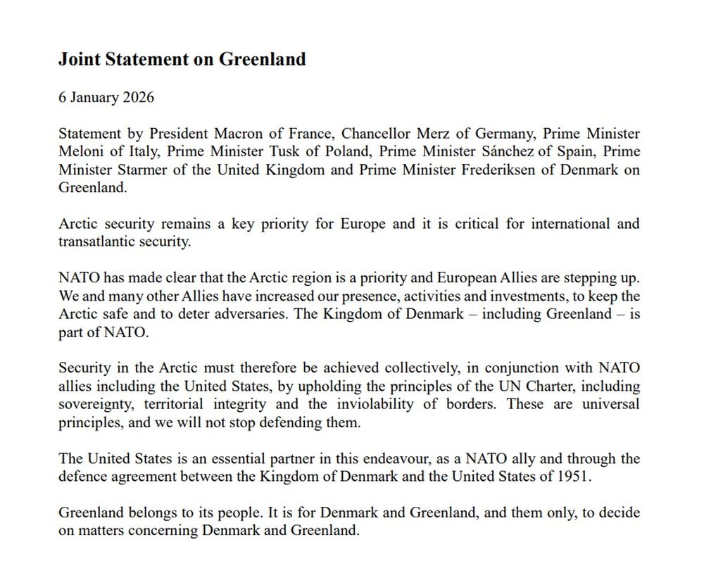 España reitera, junto a Alemania, Francia, Italia, Polonia y Reino Unido, su firme apoyo a Dinamarca y al pueblo de Groenlandia.