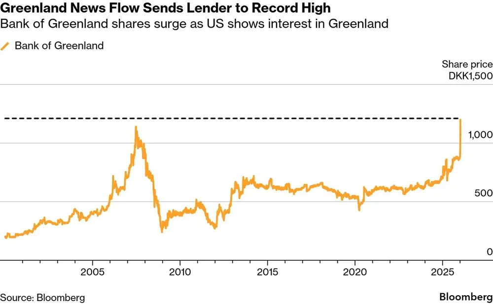 La acción del Banco de Groenlandia subió 42%. Son inversores que creen que Trump terminará apoderándose del territorio que controla Dinamarca. Apuestan a que traccionará masivos flujos de inversión.