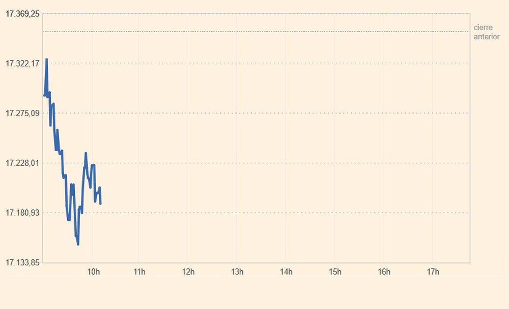 Los inversores del Ibex vigilan cualquier variación en el barril de Brent para ajustar sus posiciones. De momento, las presiones energéticas aparcan las compras, y el Ibex, tras perder ayer los 17.400 puntos, registra mínimos intradía por debajo de los 17.200 puntos.