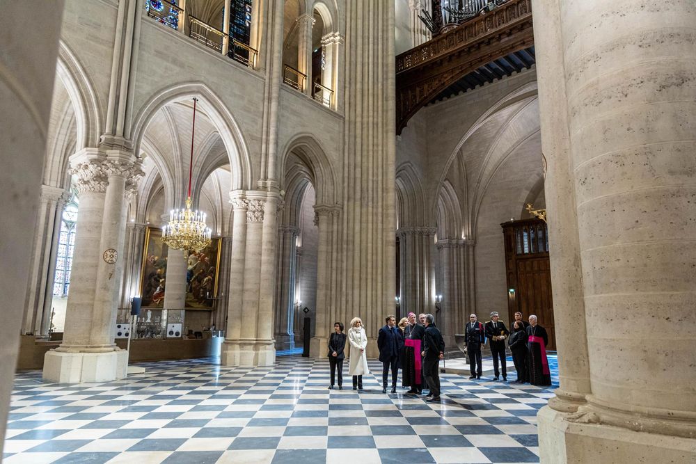 Macron, acompañado por su esposa Brigitte, la alcaldesa de París, Anne Hidalgo, y el arzobispo de la ciudad, Laurent Ulrich, entre otras autoridades, fue el primero en ver el resultado de los arduos trabajos de restauración.