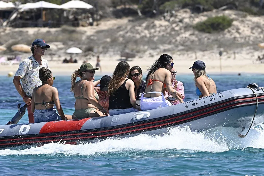 Momento de partir: luego de pasar todo el día en las aguas de Ibiza, las futbolistas abandonaron el barco y volvieron a la orilla nuevamente en la lancha que las transportó hasta allí.