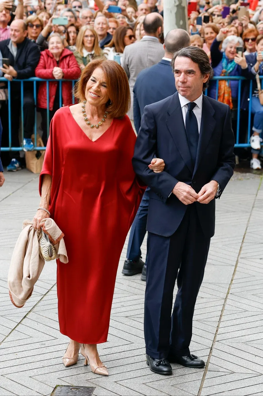El rexpresidente del Gobierno José María Aznar (c) y su esposa Ana Botella a su llegada este sábado a la iglesia de San Francisco de Borja de Madrid.