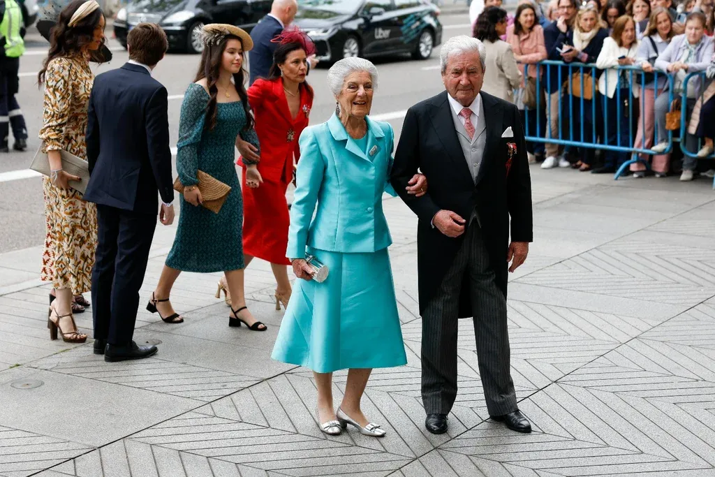 Teresa de Borbón-Dos Sicilias, abuela de la novia, a su llegada este sábado a la iglesia de San Francisco de Borja.