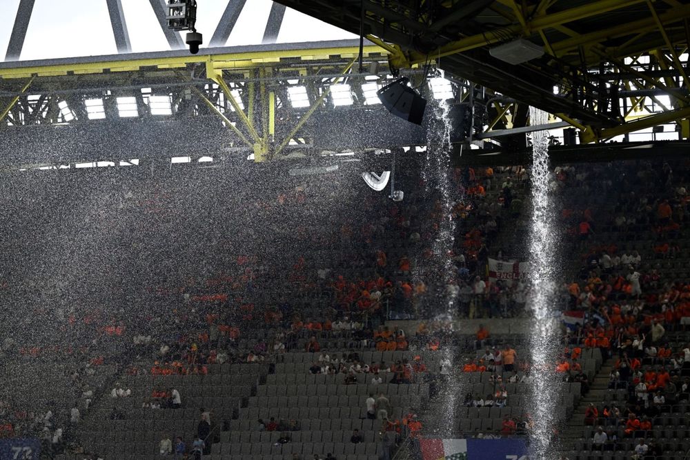 A falta de tan solo poco más de media hora de juego, la lluvia se hace presente en el Signal Iduna Park y cae mucha agua en el campo de juego.