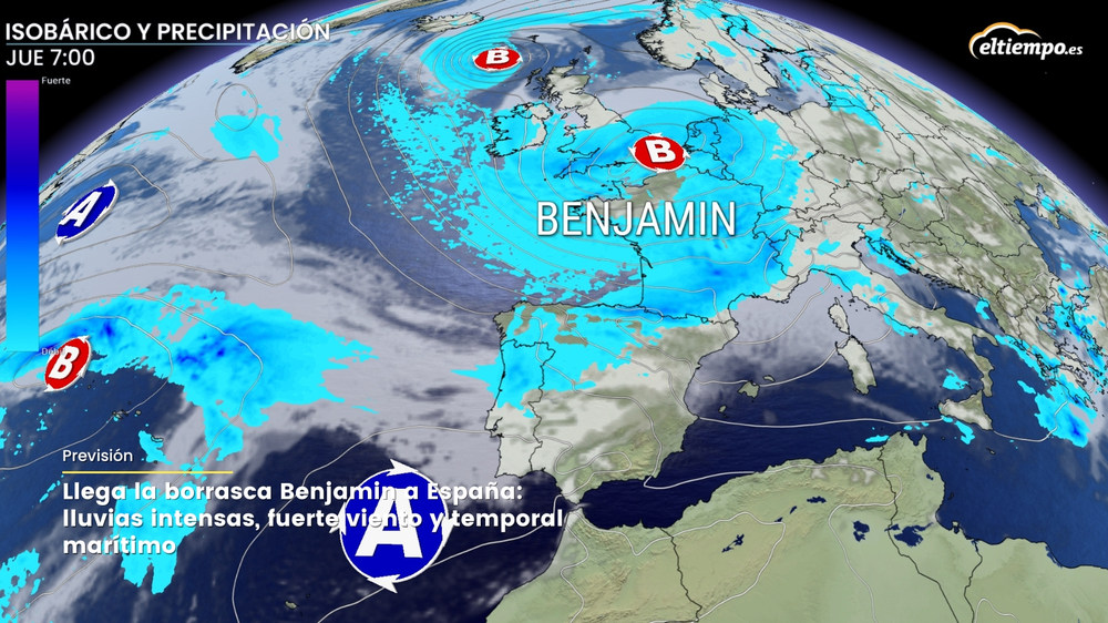 La llegada de la borrasca 'Benjamín' a la Península Ibérica ha provocado una serie de alertas en casi toda España. La Agencia Estatal de Meteorología (AEMET) ha activado avisos en un total de 34 provincias debido a fenómenos meteorológicos extremos que incluyen fuertes lluvias, viento y olas gigantes. El foco principal de preocupación está en el litoral cantábrico, donde se esperan olas de hasta 8 metros y rachas de viento superiores a los 90 km/h.