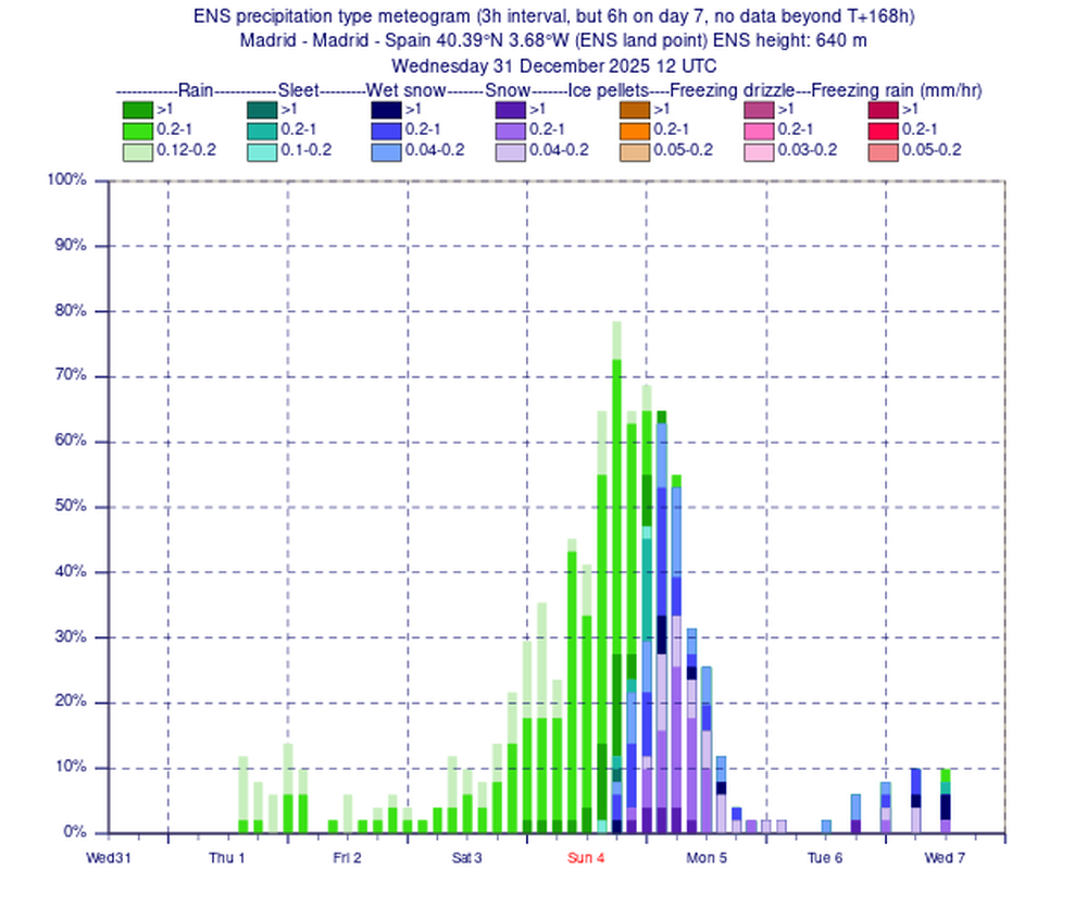 Meteorólogos de la Aemet aseguran que nevará en la ciudad de Madrid con la llegada de Francis: “Aumentan las probabilidades de nevada en Madrid capital la noche del 4 y madrugada del 5. Si encajan las piezas, veremos nevar por primera vez desde hace justo 5 años, con Filomena”, explicó, aunque recalcó que la nevada no será comparable a la de 2021: “Es poco probable que esta nevada sea tan copiosa como aquella”.