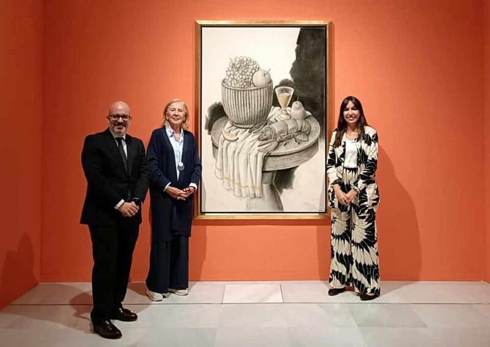 De izquierda a derecha el director comercial de CaixaBank en Granada y Jaén, Amador Carmona, la presidenta de CajaGranada Fundación, María Elena Martín-Vivaldi, y la comisaria de la exposición 'Bodegón', María Toral