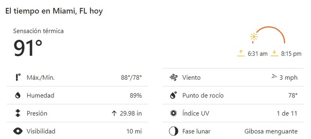 El pronóstico para hoy en Miami prevé tormentas eléctricas a partir del mediodía en todo el sur de la Florida y particularmente en Miami-Dade y Broward. Las temperaturas oscilarán entre 77°F y 79°F para la costa este y hasta 82°F en la costa oeste por la llegada de una masa de aire cálido que aporta más humedad.