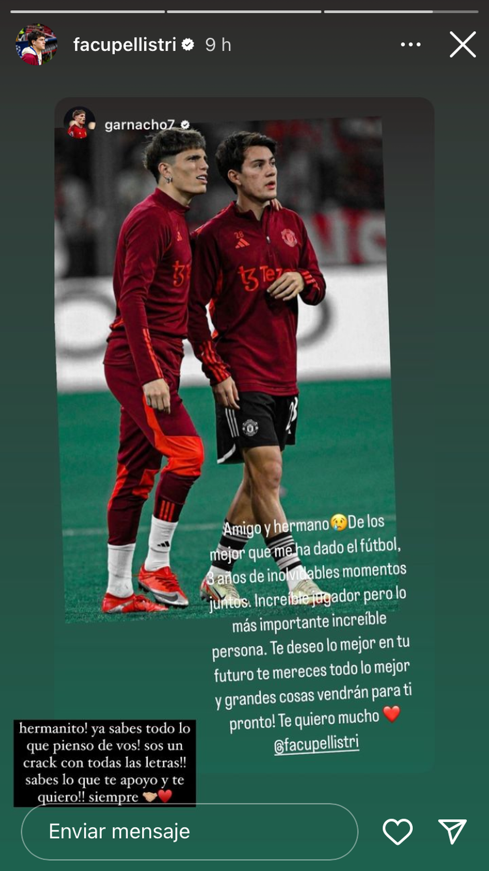"De lo mejor que me ha dado el fútbol": el mensaje para Facundo Pellistri de un jugador del Manchester United