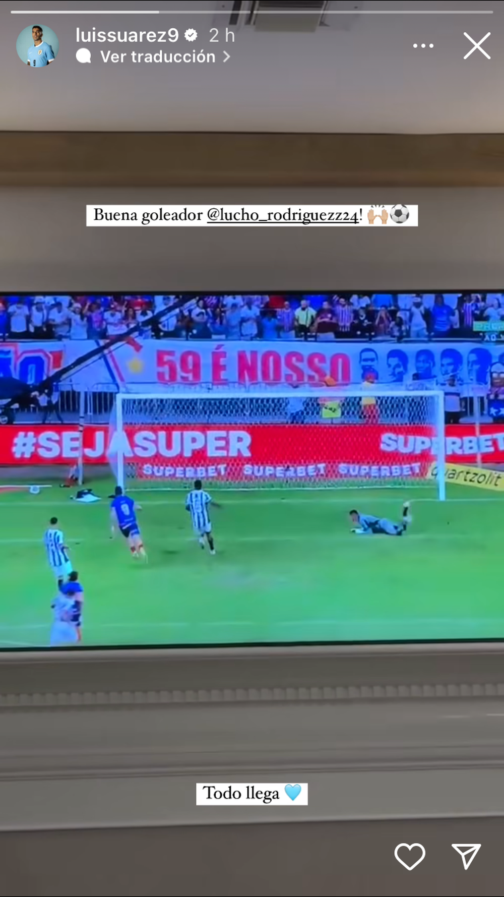Luis Suárez celebró el primer gol de Luciano Rodríguez con la camiseta del EC Bahía; un golazo que le dio la clasificación a su equipo en la Copa de Brasil