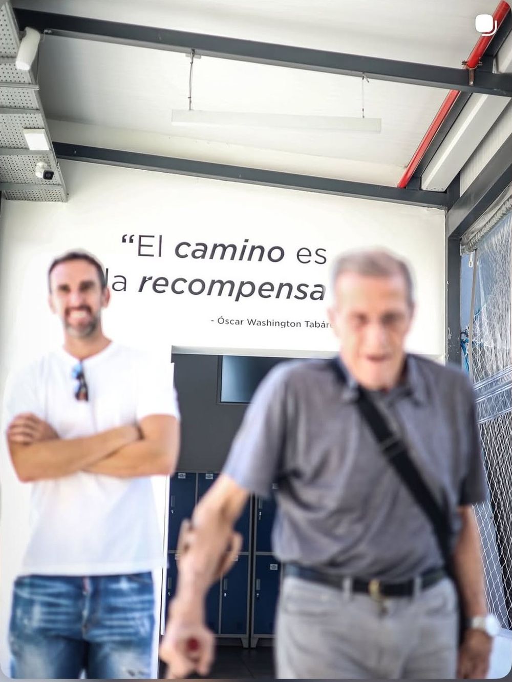 "Recibimos la visita del Maestro Óscar Washington Tabárez y del doctor Alberto Pan, quienes se tomaron un tiempo para compartir y sacarse fotos con los empleados y trabajadores de la obra que están construyendo el futuro", escribieron desde la cuenta del emprendimiento.