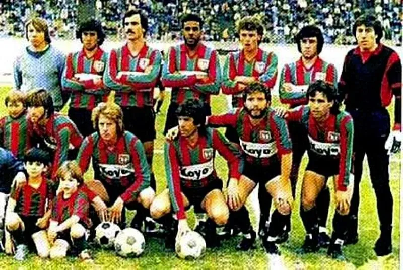 El equipo de Rentistas en 1981: arriba, Sergio Rodríguez, Julio Balerio, Martín Lasarte, César Larraura e Irrazábal; abajo, Julio Cardozo, Adolfo Barán, Seines, Germán Montero, Víctor Rabuñal y Miguel González.