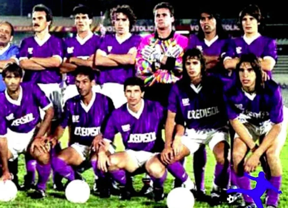 Central Español en 1986: arriba, Daniel Sánchez, Alain Zurbrikgg, Martin Lasarte, César Pereira, Victor De los Santos y Gustavo Aloy; abajo, Jorge Yañez, José Villarreal, Miguel Caillava, Daniel Viera y Alfredo Nocetti