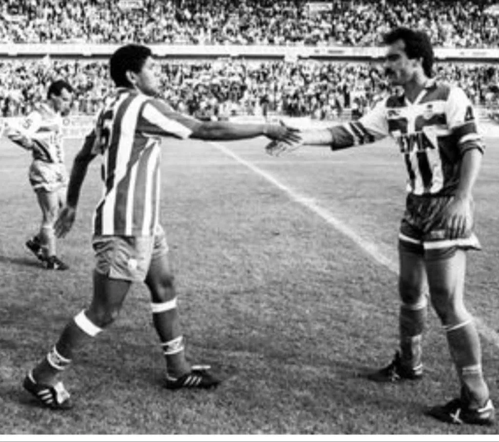 Un partido de Nacional de 1988 y en la formación aparece Martín Lasarte entre Santiago "Vasco" Ostolaza y Jorge Seré