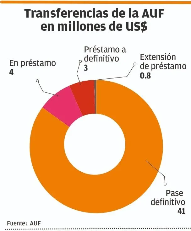 El último año, los clubes del fútbol uruguayo exportaron por US$ 47.369.674. Este monto equivale al 41% de los pases definitivos o en préstamo que se hicieron. El 59%, los que emigraron en condición de libre, no dejaron nada a los clubes. Por tanto, si la AUF transforma una parte de esa fuga a la que se refieren los neutrales, harán más rentable el negocio para las instituciones.