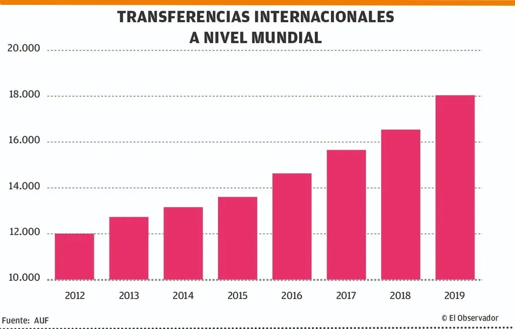 Ni el crecimiento de Paraguay, Chile y Ecuador el año pasado en transferencias fueron suficientes para acercarse a los registros de Uruguay.