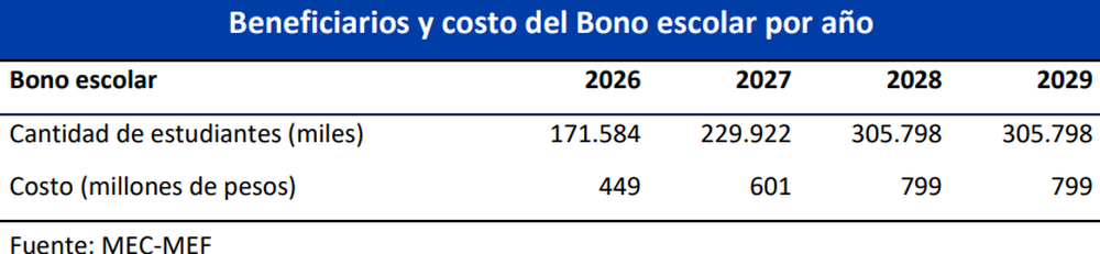 En 2026 el pago del bono comprenderá a unos 171.584 estudiantes con un costo $ 449 millones y en 2028 a unos 305.798 alumnos con $ 799 millones