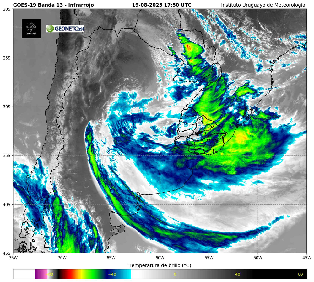 Desde el organismo compartieron una imagen infrarroja de satélite meteorológico que muestra el desarrollo y desplazamiento del fenómeno