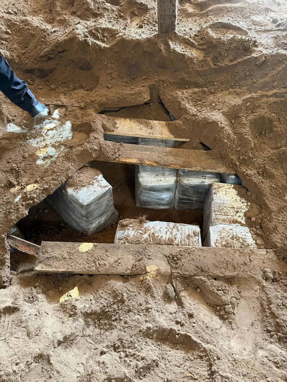 Los investigadores encontraron paquetes de cocaína enterrados bajo tierra, envueltos y resguardados en un galpón precario. A pesar de las condiciones humildes de la vivienda y el depósito, el sitio estaba equipado con cámaras de seguridad, lo que evidenciaba un sistema de monitoreo y protección del cargamento.