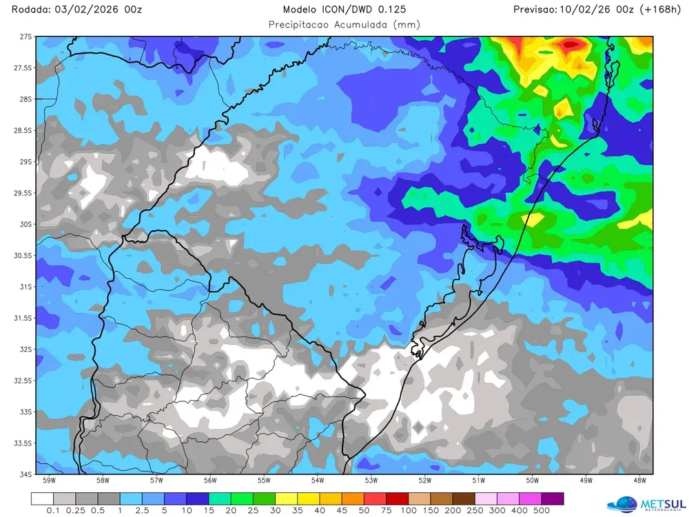En Rio Grande do Sul, la falta de precipitaciones ya derivó en racionamiento de agua en Bagé, donde en enero se registraron apenas 47,1 milímetros de lluvia. Metsul señala que la sequía golpea con más fuerza al sur y extremo sur del estado, zonas cercanas a Uruguay, mientras que el pronóstico inmediato incluye calor intenso y lluvias escasas, irregulares y mal distribuidas.