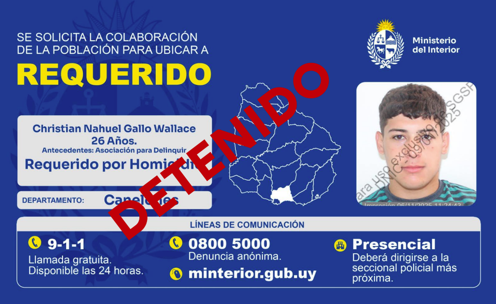 Los presuntos responsables del crimen son Christian Nahuel Gallo Wallace, de 26 años y con antecedentes por asociación para delinquir, y Kevin Aron Martínez Wallace, de 28 años, con antecedentes por rapiña y porte de armas de fuego.
