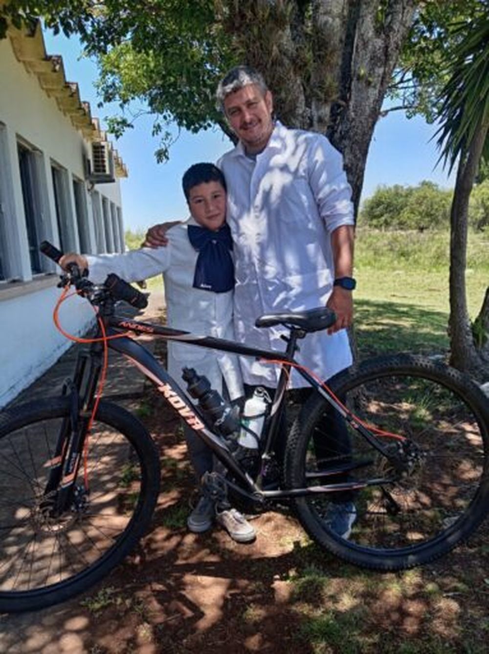 "Hoy quiero regalarte algo más que una bicicleta. Quiero regalarte un mensaje: vos podés llegar lejos, mucho más lejos de lo que imaginás", escribió el docente